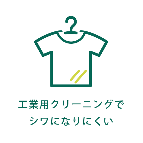 色落ちや縮みに強く、シワになりにくいため業務用クリーニングにも対応。*洗濯後の外観に関する試験方法を定めた規格です。洗濯後のしわの評価方法を示しており、5.0級はしわがほとんどない状態を意味します。