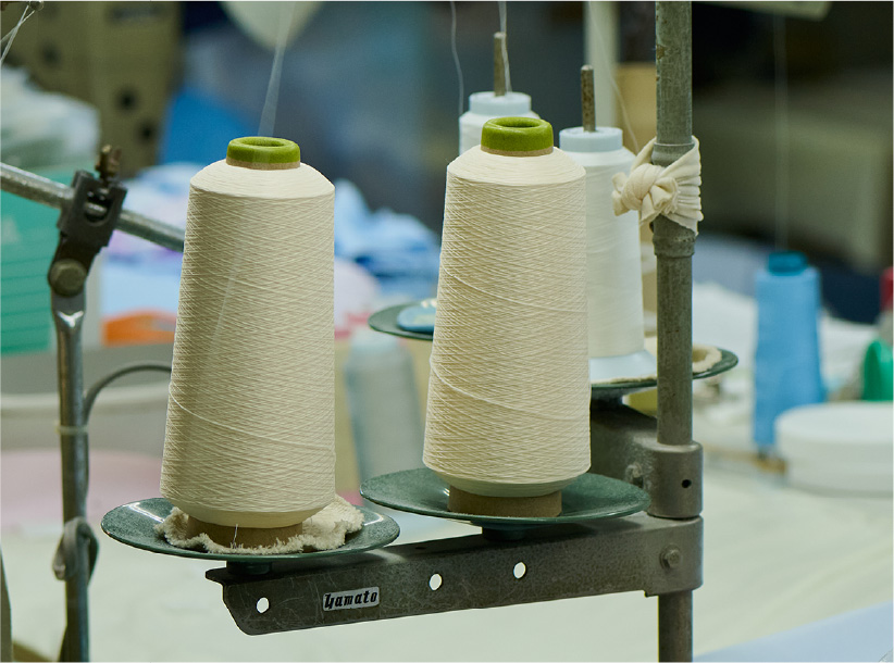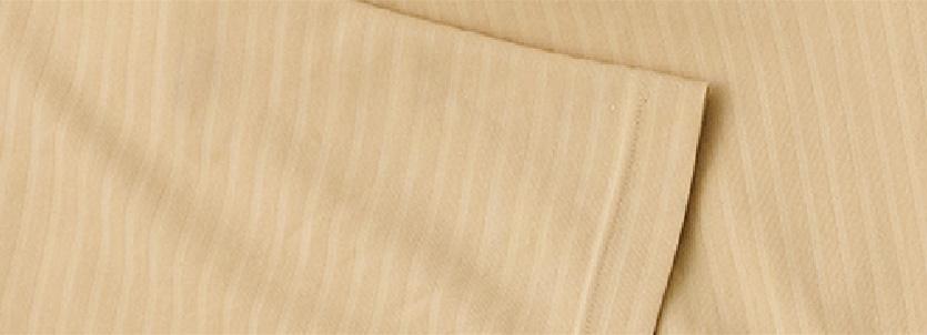 織物と編物の特性を併せ持つタテ編みニット素材です。織物よりも柔軟で、ヨコ編みニットに比べて控えめながらも安定した伸縮性があり、ほつれにくいのが特長です。耐久性と快適な着心地を兼ね備え、白衣などの医療用途にも適した高機能素材として活用されています。