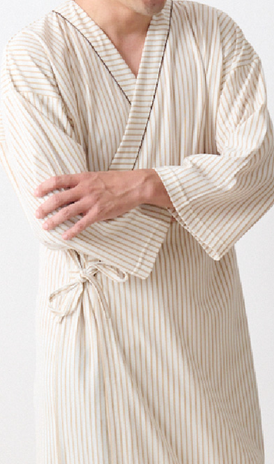 襟が一体縫製になっており、長期入院や療養で日常感を
